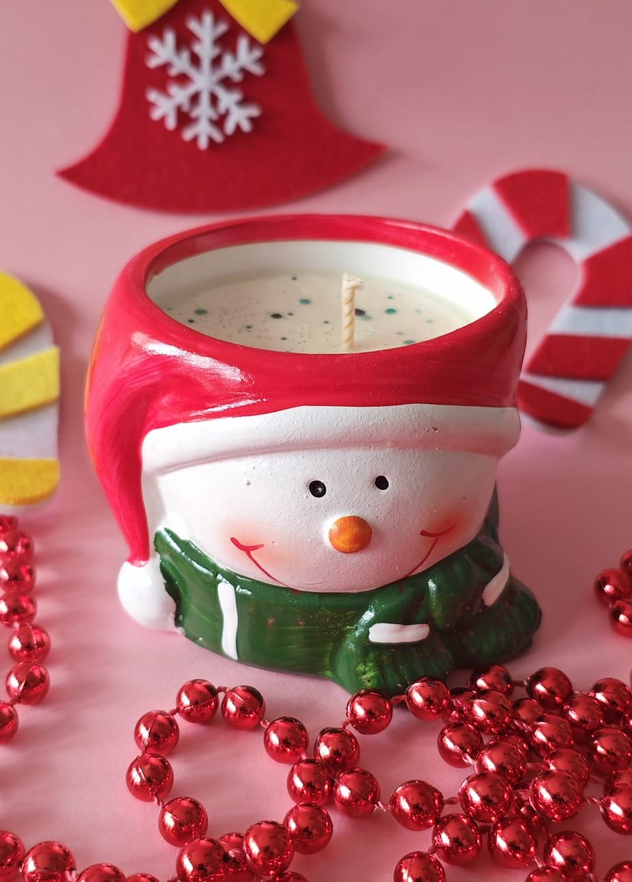 Llena tu hogar de frescura invernal con esta adorable vela con forma de Muñeco de Nieve, creada con aproximadamente 130 gramos de cera de soja natural. Su aroma Bosque Nevado combina notas frías, limpias y ligeramente amaderadas, perfectas para recrear la magia de los paisajes nevados navideños.